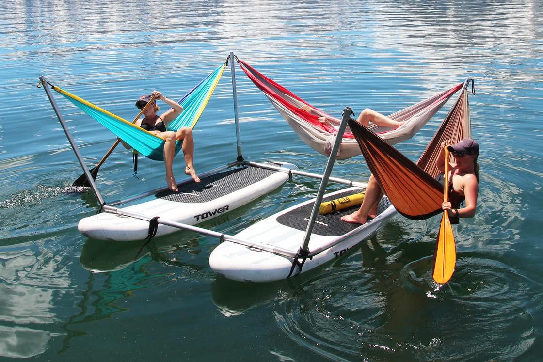 Hammocraft offers a portable frame that attaches to paddleboards or canoes, allowing you to suspend up to five hammocks over water or land for the ultimate relaxation experience.