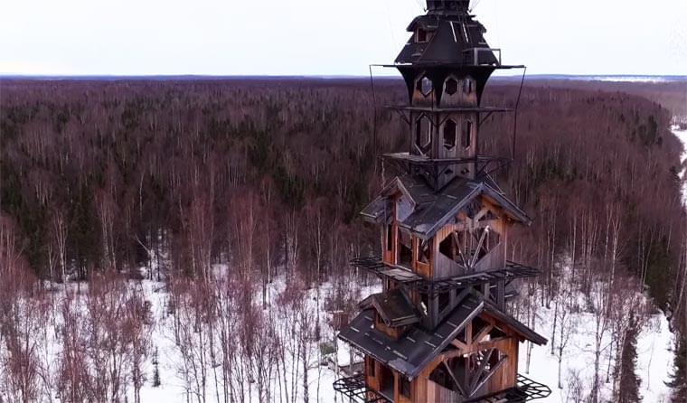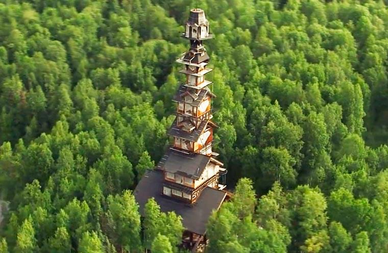An American lawyer has decided to build by himself his Goose Creek Tower, a gigantic and improbable 55 meters high cabin, looking like a strange stacking of wooden houses! It’s in the wilderness of Alaska that Phillip Weidner is patiently building his amazing cabin for several years, whose summit offers an impressive 360 view with a distance up to 480 kilometers! This eccentric wanted to build even higher, unfortunately for him the federal airspace begins at 60 meters. The massive construction is now complete, even if he now has to work on the interior design. I just love it!